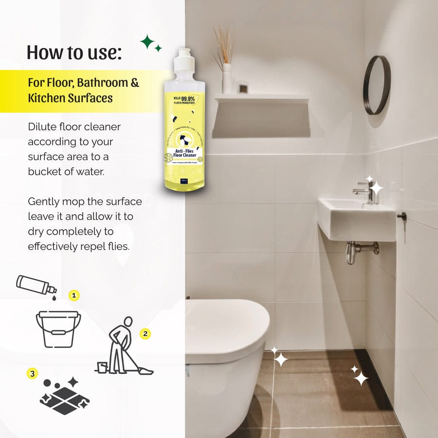 Our Anti-Flies Floor Cleaner keeps your home clean and pest-free. It's 100 times stronger than regular cleaners and safe for your whole family.